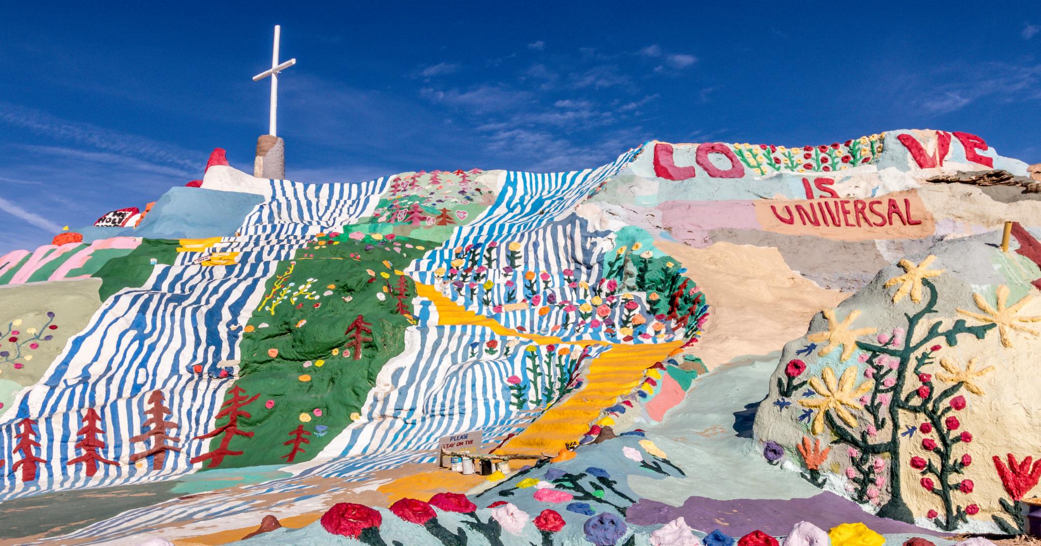 He built this spiritual landscape as a place for. Cross the train tracks and drive another three miles. Salvation mountain is about an hour from palm springs in the middle of the desert. Just outside of niland, california is a colorful artificial mountain made of adobe, straw, lots of junk, and thousands of gallons of paint. At over 80 years old, you have you been to salvation mountain?